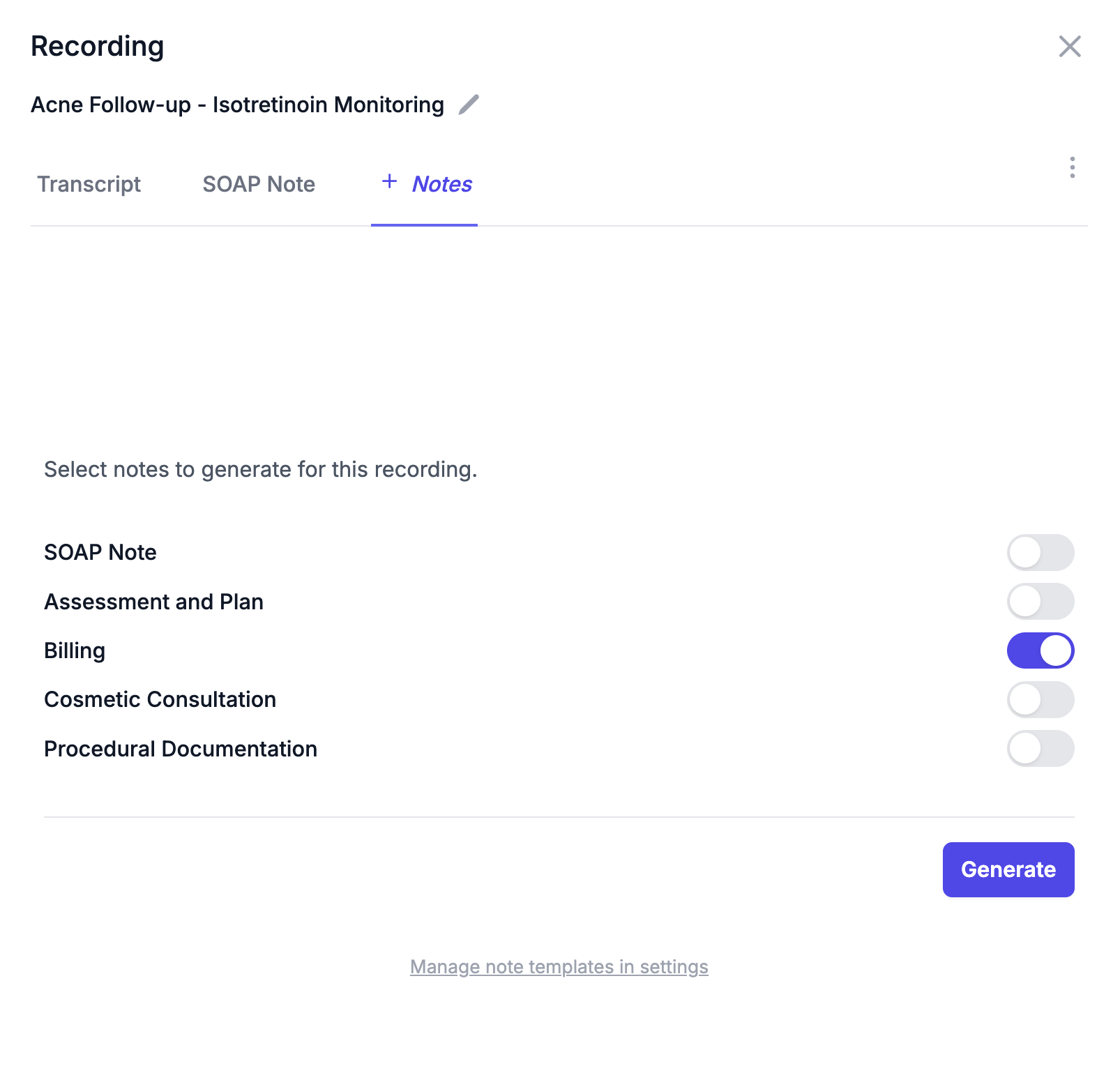 Built specifically for dermatology workflows and documentation needs.